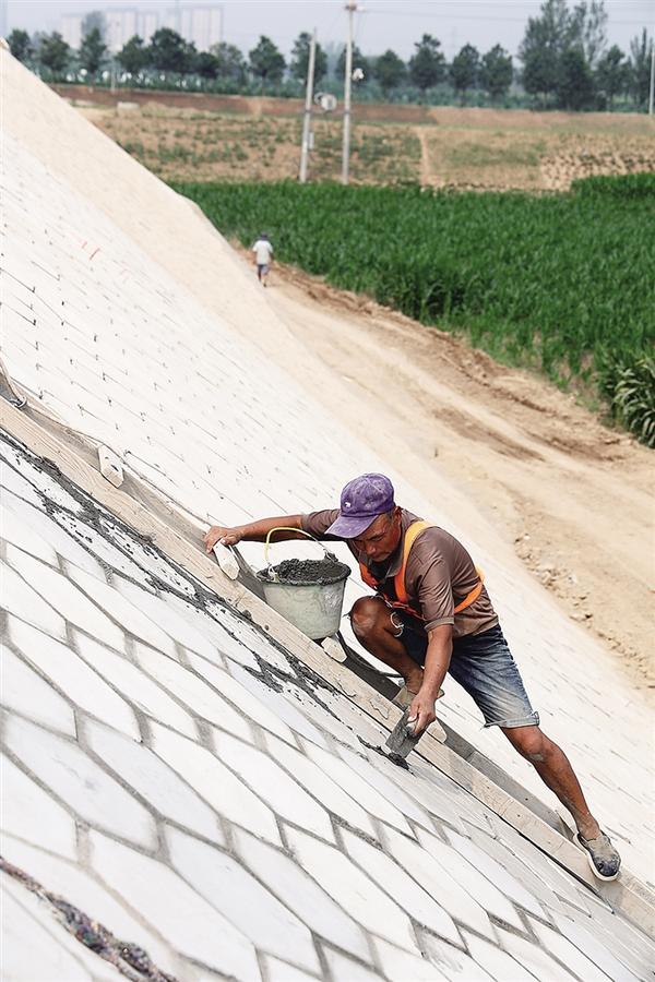 ?7月18日,在扶溝縣城郊鄉(xiāng)高標準農(nóng)田里,大型移動灌溉設備正在為農(nóng)作物澆水。