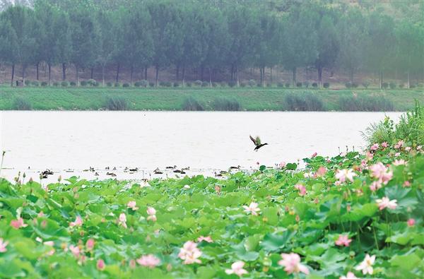 6月25日,市城鄉一體化示范區引黃調蓄湖迎來盛夏美景。湖區內,百畝荷花競相綻放,粉紅花朵間水鳥嬉戲,構成迷人生態畫卷。眼下,這里已成為市民和游客賞荷、親近自然的休閑勝地。