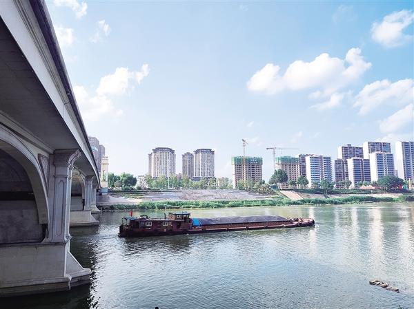 6月30日,在周口中心城區,一條貨船悠然地穿過八一大道橋橋洞。沙潁河碧波蕩漾,往來貨船穿梭如織,見證著周口水運的繁忙與興盛。兩岸新樓林立、綠樹成蔭,在藍天的映襯下,勾勒出城市蓬勃發展的生動圖景。