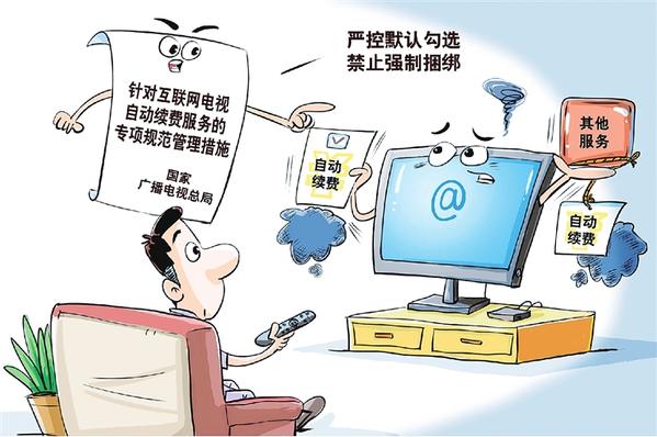 記者6月17日從國家廣播電視總局獲悉,總局近日實施針對互聯網電視自動續費服務的專項規范管理措施。此次治理聚焦用戶反映較為集中的自動續費“扣費前無提醒”“取消流程復雜”“投訴渠道不暢”等痛點問題,通過規范服務規則,全面優化互聯網電視消費體驗,在鞏固治理電視“套娃”收費工作的基礎上,構建更加公平、透明、便捷的互聯網電視服務生態。