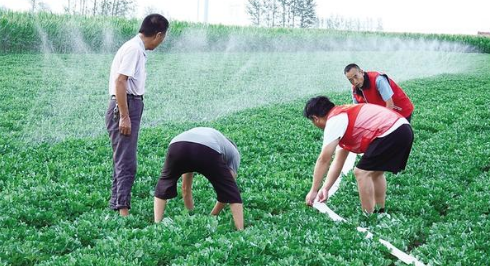 7月29日,在項城市秣陵鎮夏營行政村種糧大戶夏滿倉的農田里,兩臺卷盤式噴灌機正開足馬力作業。隨著機器勻速移動,細密的水霧均勻覆蓋秋作物,田間呈現一派生機勃勃的景象。