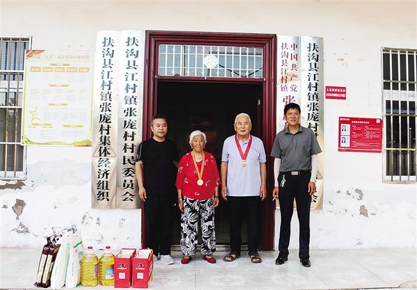 7月1日,扶溝縣委宣傳部駐江村鎮張龐行政村第一書記齊華中(左一)和村“兩委”干部走訪慰問該村兩位黨齡超過50年的黨員,為他們送去黨組織的關懷與溫暖。據了解,90歲的張秀真(左二),1957年入黨。76歲的劉學明(左三),1970年入黨。