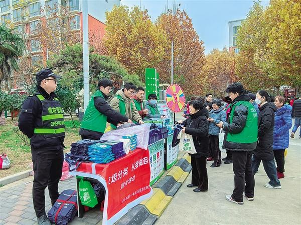 12月10日上午,市城鄉一體化示范區垃圾分類辦公室組織志愿者到文昌街道中原社區開展垃圾分類宣傳活動。
