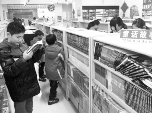 昨日,在市新華書店多個圖書展區前,許多小讀者正在埋頭看書。春節期間,不少市民選擇到書店看書買書,在享受文化的同時,也給自己“充電”,讓喜慶的節日平添了幾分書卷氣。 (記者 侯俊豫 攝)