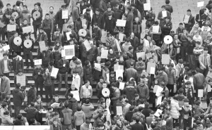 浙江義烏迎節后招工高峰 3月9日,在義烏市人力資源市場,手舉招聘信息的人們在等待應聘者。