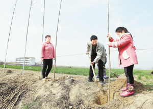左圖 昨日,扶溝縣大李莊鄉(xiāng)高河沿村的群眾正在植樹。植樹節(jié)來臨之際,該縣各鄉(xiāng)鎮(zhèn)切實抓好以查漏補缺為主的植樹造林和美麗鄉(xiāng)村綠化工作,扎實有序推進生態(tài)縣建設(shè)。(黃金峰 周運動 攝)