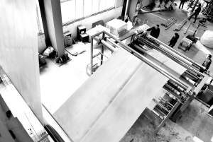 淮陽縣銀豐塑料有限公司流水生產(chǎn)線一瞥。該公司擁有大中型吹塑膜機組40多臺、制袋生產(chǎn)線6條,并擁有完備的塑料制品化驗檢測設備。生產(chǎn)的農(nóng)用塑料膜等產(chǎn)品暢銷蘇、魯、豫、皖等地,遠銷美國、韓國等國家。(記者 沈湛 攝)