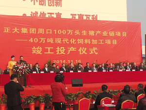 正大集團周口100萬頭生豬產業鏈項目竣工投產儀式現場。