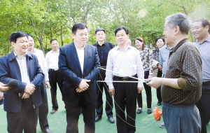 徐光一行又先后深入開發區人民廣場、星龍華緣健身場所、融輝城健身活動中心、商水縣夕陽紅健身園、周口市體育中心等地實地察看各項體育健身運動設施建設進展情況,聽取籌備工作情況匯報,了解場館布展和開幕式準備情況。看到一件件嶄新的健身運動器材、一塊塊新近完善提升的健身場地,特別是正在進行健身運動群眾的一張張笑臉,徐光滿意地點點頭,并來到市民中間,與大家親切交談,和正在健身的市民打乒乓球、試用健身器材,共同分享健身帶來的樂趣。徐光說,我市作為省十二屆“老健會”的承辦方,在時間緊、任務重、標準高、壓力大的情況下,各相關單位按照市委、市政府的安排部署,講政治、顧大局、做貢獻,做了大量卓有成效的工作,可以說我市的全民健身場所功能得到了完善、形象得到了提升,市民參與健身活動的途徑和選擇更加方便多樣,參與健身的熱情更加高漲,市委對大家的工作是滿意的。但是,我們還要看到,我市的全民健身工作與群眾的需求還存在一定差距,必須進一步加大投入力度,建設好、管理好、使用好相關體育健身設施,使之能夠更好地滿足群眾健身需求,服務百姓生活。
