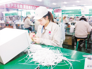 昨日,在三星手機(jī)耳機(jī)供應(yīng)商日立亞電子淮陽有限公司生產(chǎn)車間,工人們正在生產(chǎn)線上忙碌著。淮陽縣近年來積極實(shí)施“工業(yè)強(qiáng)縣、旅游突破、城鄉(xiāng)統(tǒng)籌、四化同步”發(fā)展戰(zhàn)略,不斷調(diào)整工業(yè)產(chǎn)業(yè)結(jié)構(gòu),增加企業(yè)科技含量,以提升產(chǎn)品質(zhì)量和市場競爭力,促進(jìn)經(jīng)濟(jì)轉(zhuǎn)型升級。(記者 侯俊豫 攝)