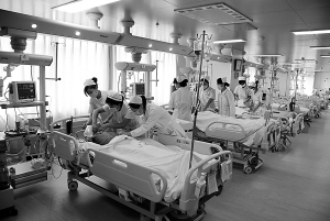 5月4日上午8點45分,記者走進了周口市中醫院綜合病房樓七樓的重癥醫學科(即ICU病房),護士長徐亞鵬熱情地接待了我們。在徐亞鵬的介紹下,我們親眼目睹了重癥醫學科內病人的各種反應。當天病人不太多,10個床位只有7個病人,其中有產后大出血的、有肝癌晚期的、有有機磷農藥中毒的……幾乎每個人都上著呼吸機。身著紫色護士服的“天使”們在各種儀器和各個危重病人間來回穿梭。