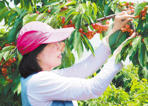 昨日,一位市民正在扶溝縣包屯鎮小雜果園區內采摘櫻桃。近年來,該鎮積極引導群眾發展名、優、特小雜果種植業,小雜果種植業已成為促進當地農民增加收入的一種有效途徑。 (黃金峰 陳學政 攝)