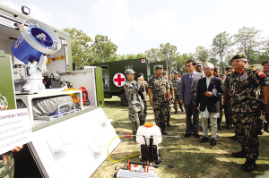尼泊爾軍方25日在位于加德滿都的軍隊醫院大草坪舉行隆重交接儀式,感謝中國把兩套總價值5900萬元人民幣的野戰醫院設備贈予尼軍。