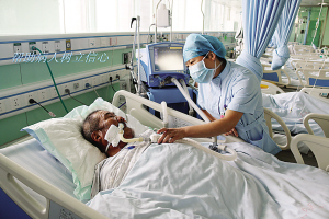 當然,護理工作并非一帆風順。眾所周知,ICU收治的都是重癥患者,患者大多數都有精神障礙,譫妄、昏迷、煩躁不安等狀況很常見,這就需要護士們充滿耐心和愛心。張衛華以實際行動詮釋人間大愛。2014年8月,科室里來了一名Ⅱ級肝性腦病的男性患者,已經精神錯亂且不認人,行為非常危險。由于該病不能使用鎮靜藥物,當責任護士靠近患者時,患者拿起床頭柜上的一個玻璃瓶向護士砸去。作為護士長的張衛華見此情景,臨危不懼,用自己的身軀保護責任護士。只聽見啪的一聲,鮮血順著她的臉頰流了下來,可她還是慢慢走向那名患者,輕聲向他解釋情況以安撫其情緒?;颊叩那榫w漸漸地穩定下來,她才去處理傷口,并輕松地說:“只要沒傷著病人就好?!庇幸淮危剖依飦砹艘幻墓W≡旱睦先?,老人的孩子都在外地,得知老人生病住院也沒趕回來照顧,甚至連一句問候都沒有。老人除了要忍受著病痛的折磨,還要忍受對孩子們的思念。張衛華見此情景,非常心疼,為安慰老人,上班期間她都會去陪老人聊天,哄老人開心。老人吵著不舒服的時候,張衛華用藥緩解,同時耐心安撫老人。晚上老人因為孩子的事情,會像一個小孩兒一樣哭泣不止,張衛華心疼地陪在老人身邊,一遍又一遍地安慰說:“別害怕,我在您身邊,我就是您的女兒?!?/P>