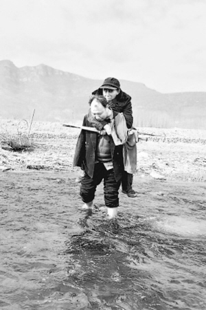 賈文其蹚著冰涼的河水,將賈海霞背到植樹地點。